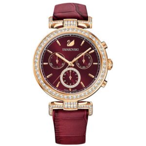 SWAROVSKI Women’s Swiss Made Quartz Red Leather Strap Red Dial 38mm Watch 5416701