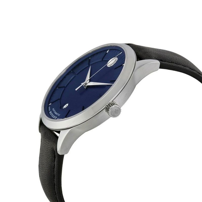 Movado Men’s Automatic Swiss Made Black Leather Strap Blue Dial 40mm Watch 606874